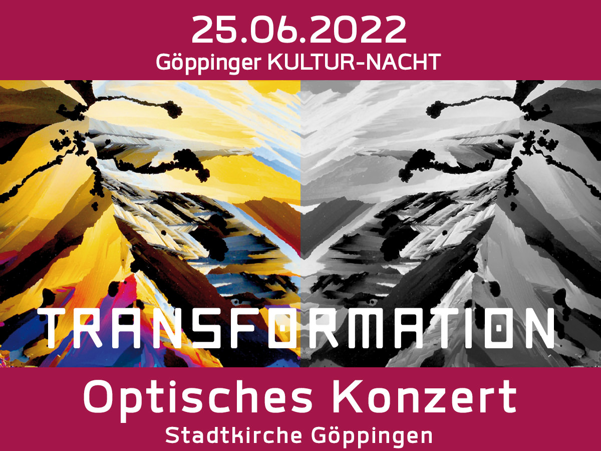 m 16.09.23 (Beginn ca. 21:00 Uhr) projizieren unsere traumhafte Mikrowelten an die Mauern des Göppinger Rathauses – interaktiv, live performt und im Gleichklang mit den schönsten Filmsoundtracks der Geschichte. Die Betrachter unseres „Optischen Konzertes“ können in einer unvergleichlichen audio-visuellen Reise in gänzlich neue Sehwelten eintauchen und Formen- und Farbenfeuerwerke der Schätze der Natur von atemberaubender Schönheit erleben.